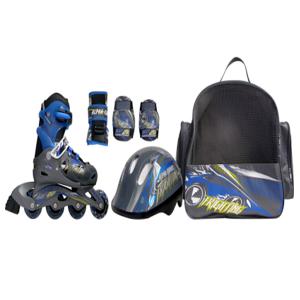 В комплект входят: Ролики, шлем, комплект защиты, сумка