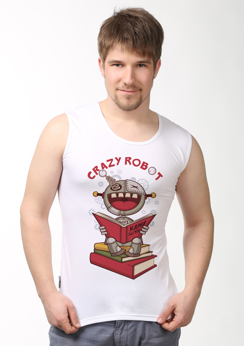 Майка мужская белая с рисунком «Crazy robot»