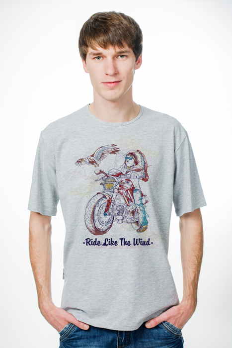 Футболка мужская из высококачественного хлопкового трикотажного полотна. Свободный силуэт, средняя степень облегания, круглый ворот. Посадка универсальная, подходит для любого типа фигуры. Футболка не деформируется и не «закатывается» после многократных стирок.