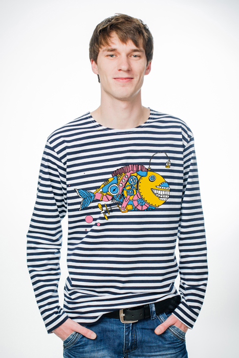Тельняшка мужская с длинным рукавом из высококачественного хлопкового трикотажного полотна. Свободный силуэт, средняя степень облегания, круглый ворот. Посадка универсальная, подходит для любого типа фигуры. Футболка не деформируется и не <<закатывается>> после многократных стирок