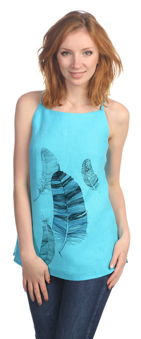 Топ на бретелях для жаркого лета из легкого льняного полотна. Свободный силуэт, универсальная посадка на любую фигуру. Возможна небольшая усадка после стирки. Корректировать длину изделия рекомендуем после первой стирки.