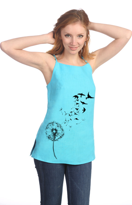 Топ на бретелях для жаркого лета из легкого льняного полотна. Свободный силуэт, универсальная посадка на любую фигуру. Возможна небольшая усадка после стирки. Корректировать длину изделия рекомендуем после первой стирки.