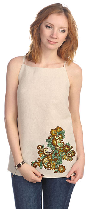 Топ на бретелях для жаркого лета из легкого льняного полотна. Свободный силуэт, универсальная посадка на любую фигуру. Возможна небольшая усадка после стирки. Корректировать длину изделия рекомендуем после первой стирки.