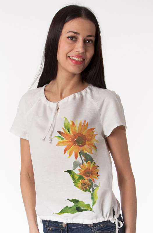 Очень женственная, удобная и практичная блузка из экологичного материала с оригинальным авторским рисунком. Прекрасно будет смотреться с брюками, юбками.