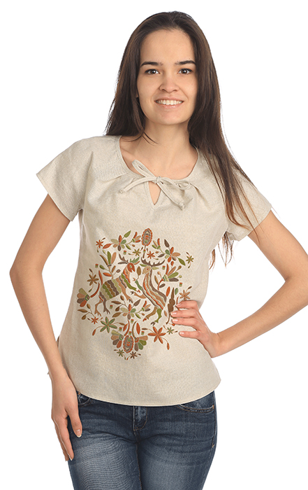 Очень женственная, удобная и практичная блузка из экологичного материала с оригинальным авторским рисунком. Прекрасно будет смотреться с брюками, юбками.