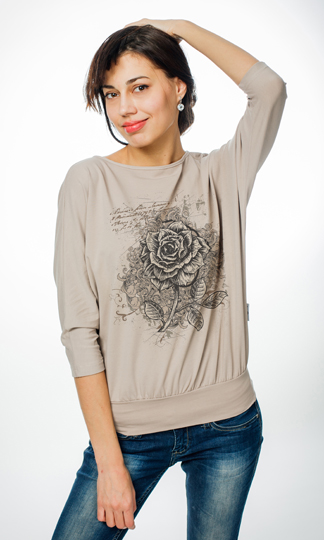 Дополнительная информация: Блузка женская из высококачественного хлопкового трикотажного полотна. Свободный женственный силуэт, универсальная посадка на любую фигуру, на спине V-образный вырез. Оригинальный авторский рисунок на блузке, подчеркивает индивидуальность.