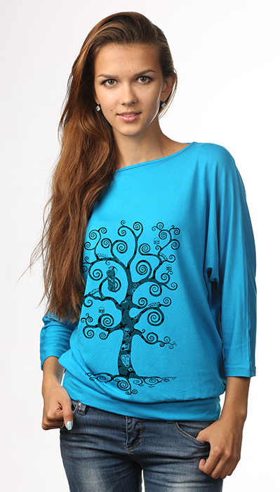 Дополнительная информация: Блузка женская из высококачественного хлопкового трикотажного полотна. Свободный женственный силуэт, универсальная посадка на любую фигуру, на спине V-образный вырез. Оригинальный авторский рисунок на блузке, подчеркивает индивидуальность.