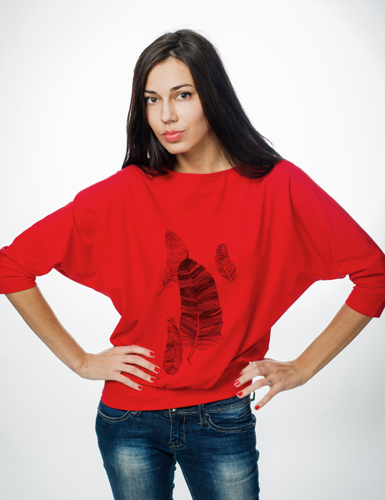Дополнительная информация: Блузка женская из высококачественного хлопкового трикотажного полотна. Свободный женственный силуэт, универсальная посадка на любую фигуру, на спине V-образный вырез. Оригинальный авторский рисунок на блузке, подчеркивает индивидуальность.