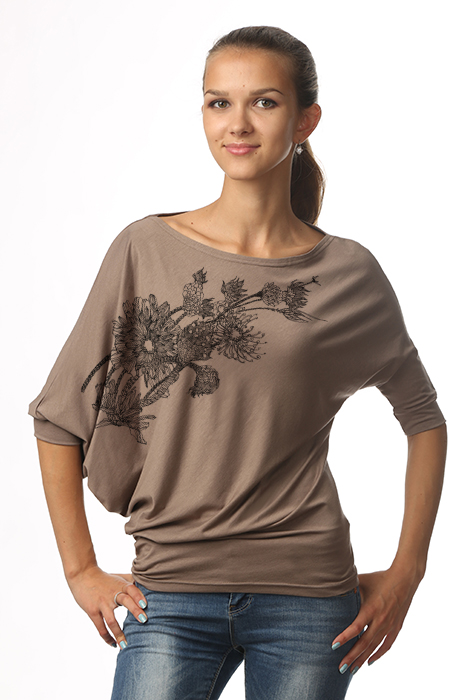 Блузка женская,свободного кроя,с асимметричными рукавами. Создана специально для любителей стиля casual. Прекрасно садится на любую фигуру,не сковывает движения. Такая блузка прекрасно вписывается в гардероб любой современной девушки.