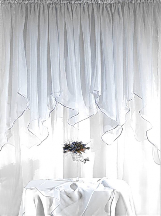 Невесомая штора - арка <<Лотос>> похожа на лепестки нежного цветка. Она не только украсит окно, но и оставит в Вашем распоряжении еще одну поверхность - подоконник. Ширина шторы регулируется шторной лентой, поэтому эта арка может использоваться на окнах самой разной ширины. Многообразие расцветок позволяет подобрать штору к любому цветовому решению Вашей кухни.