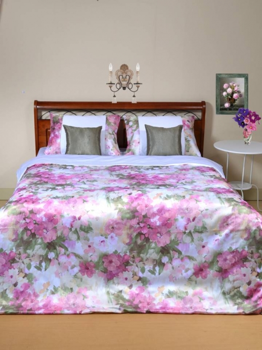 Мы используем печать на искусственном шелке с использованием европейских красителей, это позволяет получить стойкое и яркое, многоцветное изображение. При этом, чтобы Вам было комфортно спать, простыня, срединная часть наволочек и пододеяльника шьются из сатина (100%-го хлопка).