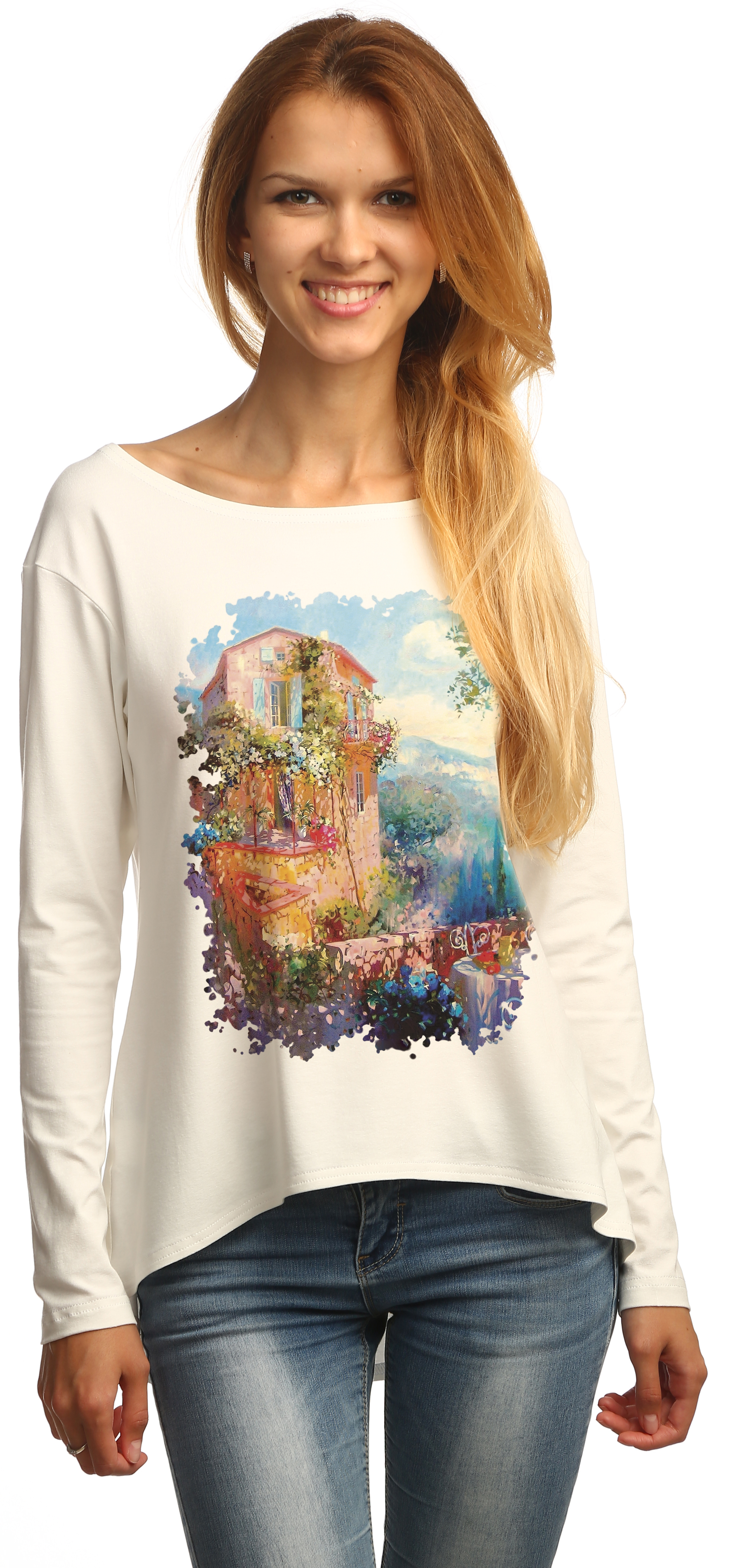 Дополнительная информация: Блуза расклешенного силуэта с вырезом горловины "лодочка" и удлиненной спинкой. Свободная, удобная и эффектная модель выполнена из приятного на ощупь тонкого трикотажа.