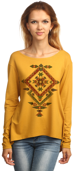 Дополнительная информация: Блуза расклешенного силуэта с вырезом горловины "лодочка" и удлиненной спинкой. Свободная, удобная и эффектная модель выполнена из приятного на ощупь тонкого трикотажа.