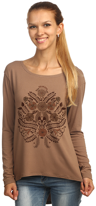 Дополнительная информация: Блуза расклешенного силуэта с вырезом горловины "лодочка" и удлиненной спинкой. Свободная, удобная и эффектная модель выполнена из приятного на ощупь тонкого трикотажа.